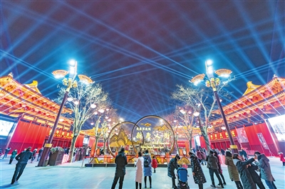 大明宮景區以互動體驗區、文創產品區、美食娛樂區3大主題,泡泡樹、球幕影院、奇趣妙音盒、彩虹跳、呼吸燈等8大互動體驗,送出奇妙的新年感受。