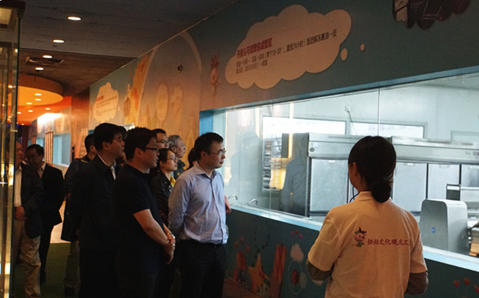 (集團領導參觀御品軒企業文化墻及烘焙文化觀光線)